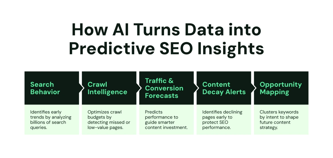 AI doesn’t just look at what happened—it helps forecast what to do next. It enables predictive modeling based on user data, search logs, and page-level engagement. Here’s how: